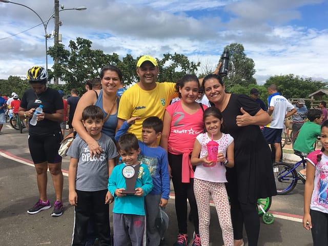 Já o casal Jean Carlos e Paula Alvino Peixoto, do Jd. Alegria, e a irmã Eliza Moares, do Jd. Cristiane, trouxeram as cinco crianças da família para o passeio e foram visitados pela sorte, tendo recebido vários prêmios no sorteio. “Nós achamos muito bom, muito gostoso o passeio e ficamos felizes pelos prêmios. Vamos aproveitar agora o resto da festa e do dia no Parque”, comentaram. Um dos filhos do casal, Caian Peixoto, de 4 anos, ainda foi premiado com um troféu por ser o mais jovem ciclista no passeio.