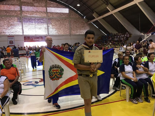 A delegação itupevense foi representada por Lucília Carneiro Soares, Sérgio Soares e Karl Otte, que entraram carregando com orgulho a bandeira do município, recebendo muitos aplausos dos colegas nas arquibancadas.