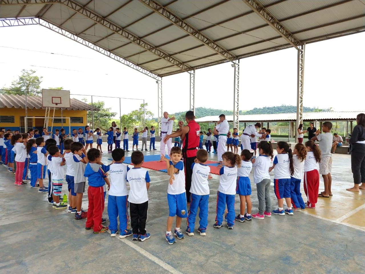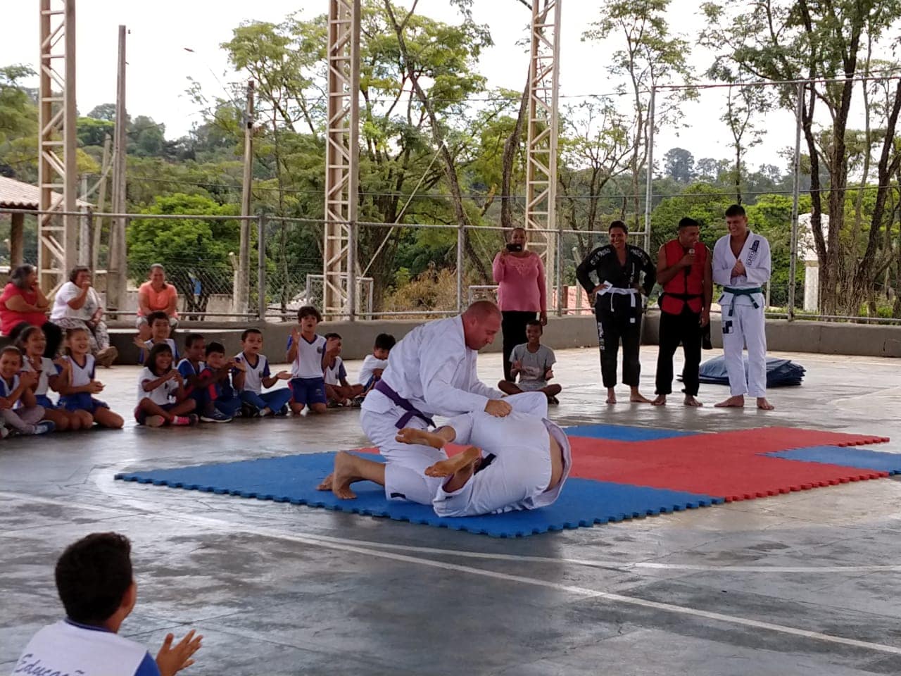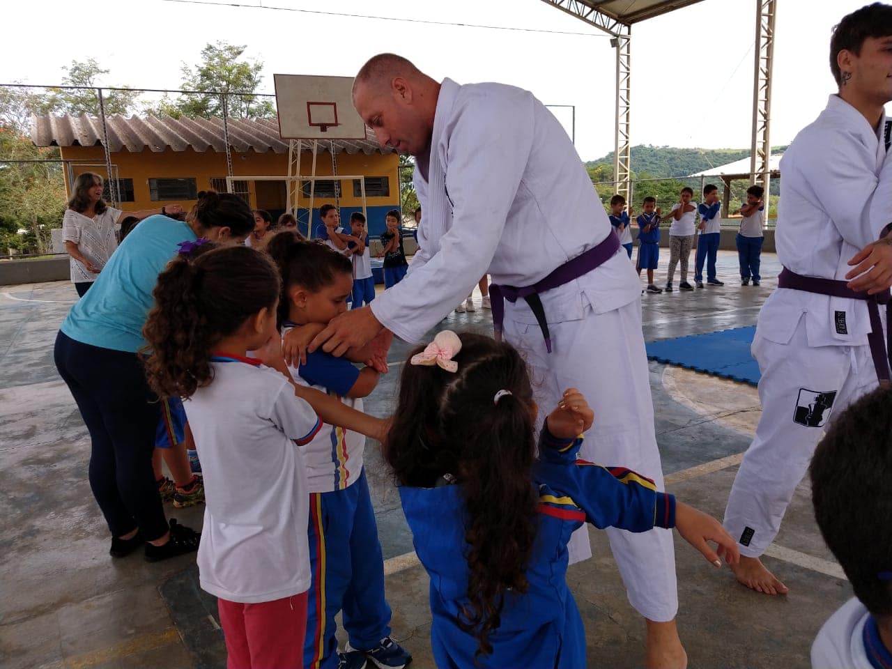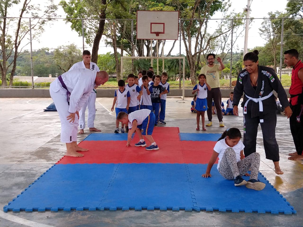 “Foi um dia muito impactante para as crianças. É muito difícil abordar artes marciais na escola e uma diretora que abrace a ideia. Fizemos uma parte lúdica, onde as crianças aprenderam golpes por meio de brincadeiras. Foi muito bacana mesmo”, explicou a professora de educação física, Géssica Rinaldi, que organizou a atividade junto com o professor de filosofia Gustavo Bastos e apoio da diretora da escola, Yara Burgos.