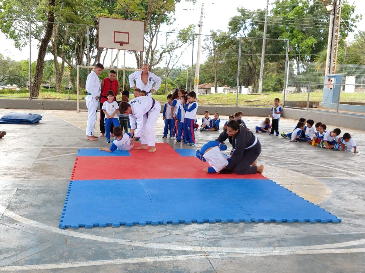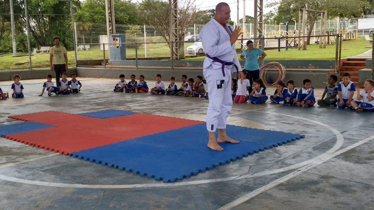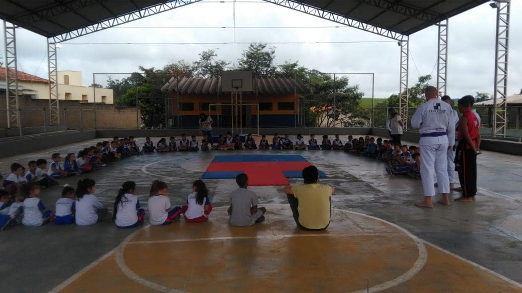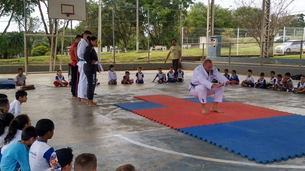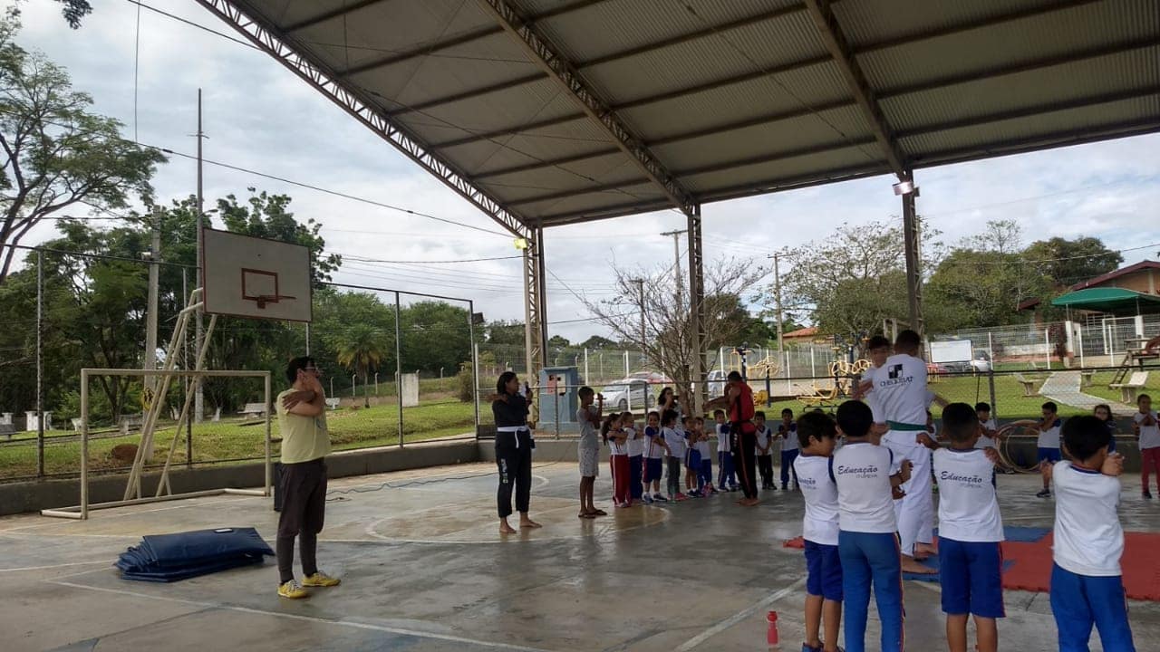 “Foi um dia muito impactante para as crianças. É muito difícil abordar artes marciais na escola e uma diretora que abrace a ideia. Fizemos uma parte lúdica, onde as crianças aprenderam golpes por meio de brincadeiras. Foi muito bacana mesmo”, explicou a professora de educação física, Géssica Rinaldi, que organizou a atividade junto com o professor de filosofia Gustavo Bastos e apoio da diretora da escola, Yara Burgos.