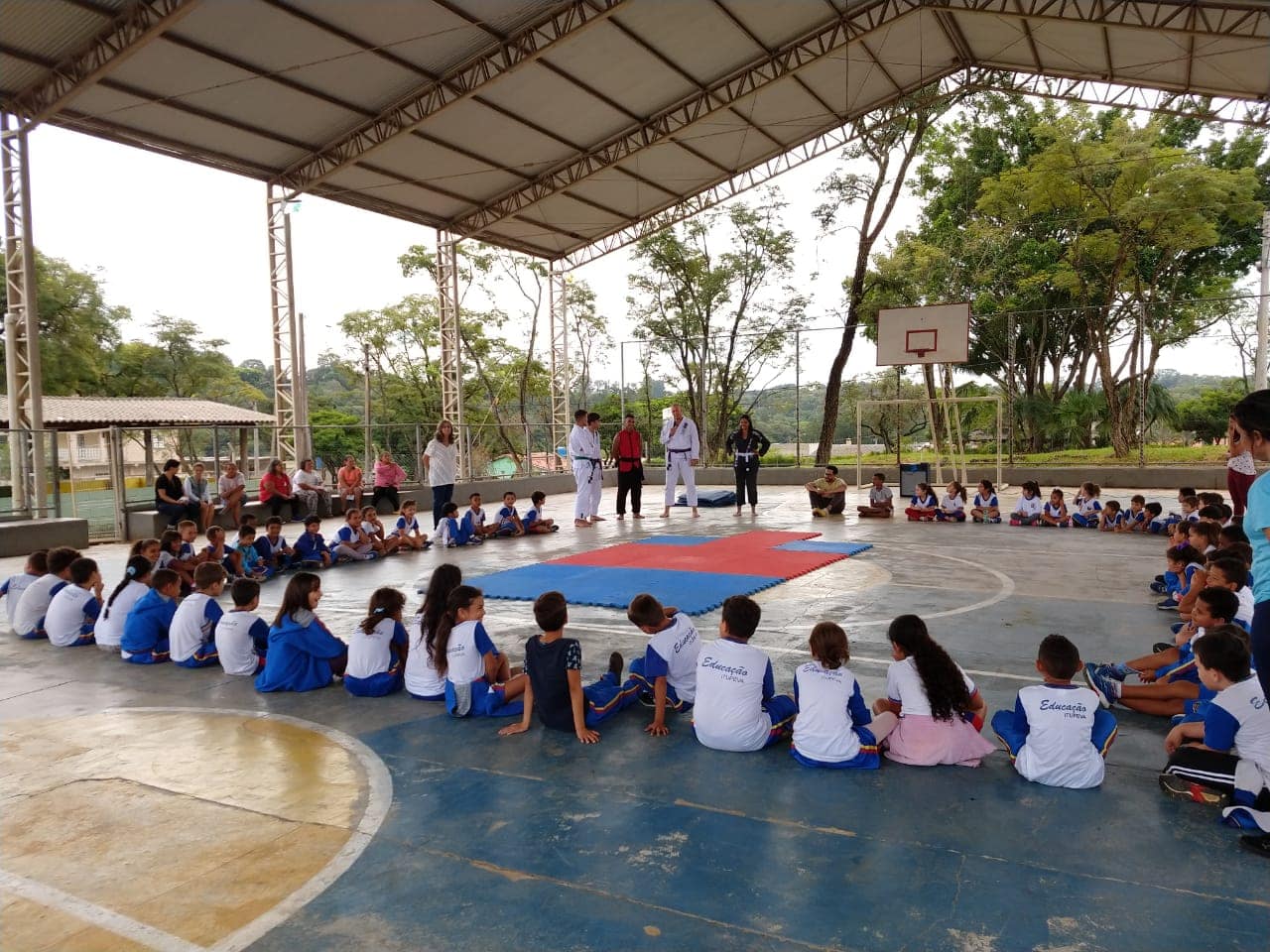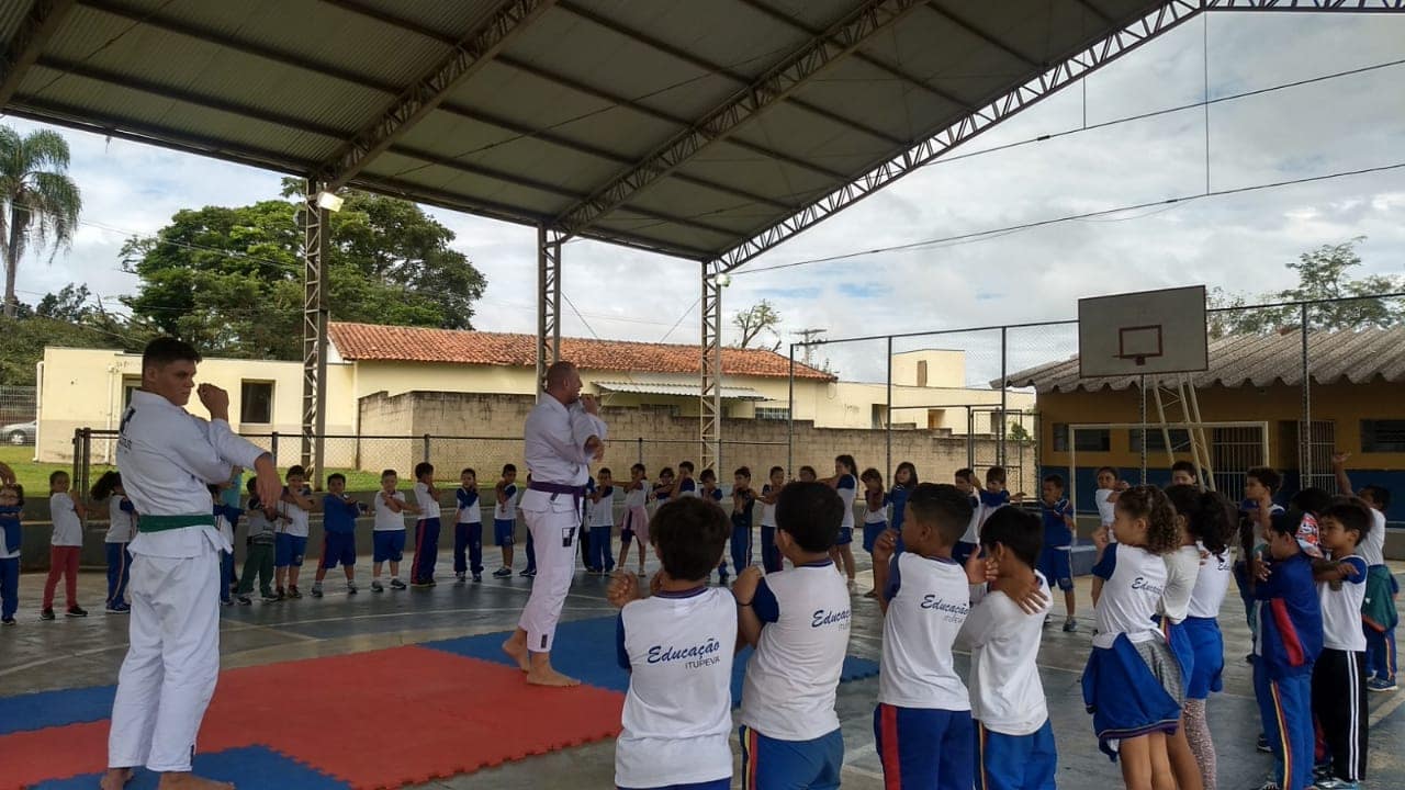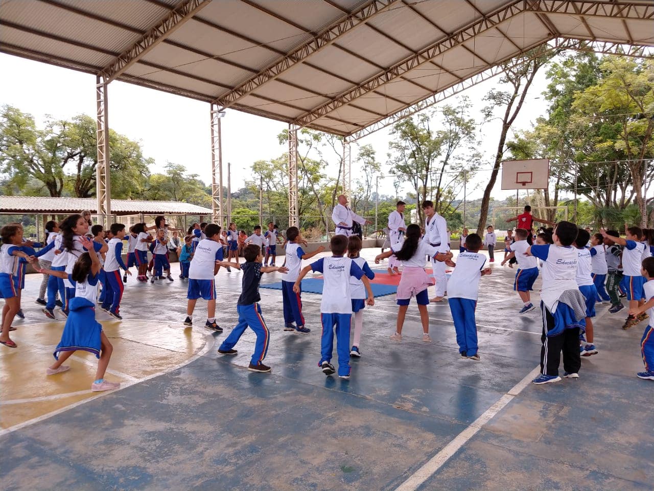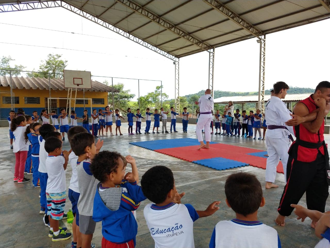 “Foi um dia muito impactante para as crianças. É muito difícil abordar artes marciais na escola e uma diretora que abrace a ideia. Fizemos uma parte lúdica, onde as crianças aprenderam golpes por meio de brincadeiras. Foi muito bacana mesmo”, explicou a professora de educação física, Géssica Rinaldi, que organizou a atividade junto com o professor de filosofia Gustavo Bastos e apoio da diretora da escola, Yara Burgos.