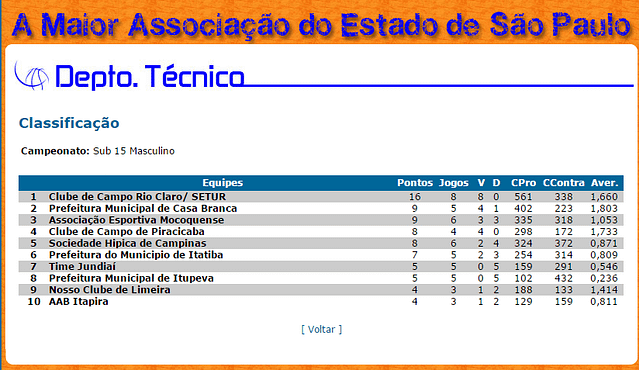 Além de Itupeva e de Casa Branca, o Campeonato sub-15 da ARB conta com os times: Clube de Campo Rio Claro/Setur, Clube de Campo de Piracicaba, Associação Esportiva Mocoquense, Sociedade Hípica de Campinas, Prefeitura de Itatiba, Time Jundiaí, Nosso Clube de Limeira e AAB Itapira. O líder até o momento é o Clube de Campo Rio Claro e Itupeva está na nona posição.