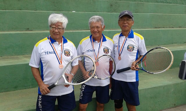 Os tenistas Shibó, bronze no individual, Toshiyuki e Toya, que disputam o terceiro lugar de dupla