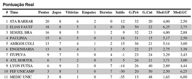 Ao todo, onze equipes disputam a Copa Campinas: Itupeva, Lyon Futsal, Elias Fausto, Paulínia/Azulão, Engenharia Unicamp, Medicina Unicamp, Clube Atlético Hortolândia, FEF Unicamp, Santa Barbara D’Oeste, Bragança/Oportunity/Fesb e Amigos do Colina/Valinhos. As oito primeiras na fase de grupos seguem para a próxima fase.