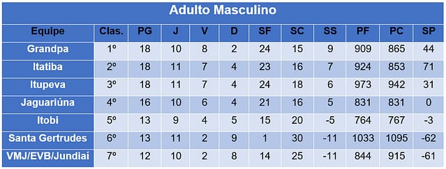 Com o resultado, a equipe itupevense divide a liderança da competição com o próprio Grandpa e com Itatiba, todos com 18 pontos. Itupeva e Itatiba ainda têm um jogo e podem chegar a 20 pontos, enquanto que o Grandpa ainda joga mais duas vezes. O Jaguariúna, em quarto, é o único time que também pode ainda chegar a 20 pontos, mas o equilíbrio da categoria é muito grande e as últimas partidas podem mudar bastante a classificação dos seis primeiros colocados.