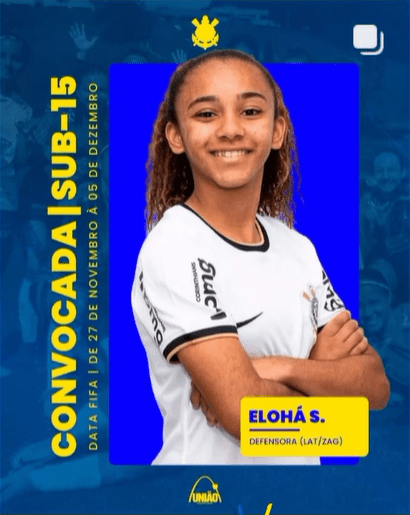 A jovem itupevense Elohá Siqueira, que foi contratada para jogar na equipe sub-15 de futebol feminino do Corinthians neste ano, está alçando voos ainda maiores e realizando um grande sonho: ela foi convocada para a Seleção Brasileira de futebol sub-15!