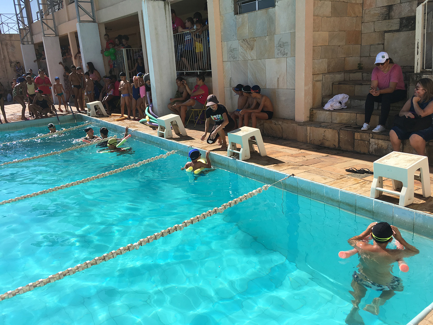 O evento reuniu os alunos do professor Lucas, da escolinha de natação, e os alunos do PEPT (Projeto Esporte Para Todos) da professora Jane, Alessandra e do estagiário Gustavo. Com participação ativa dos pais, as quase 60 crianças que participaram do festival puderam nadar e demonstrar o que foi aprendido durante o ano. No fim, todos ganharam medalhas e ainda aproveitaram a manhã para uma confraternização com comes e bebes.