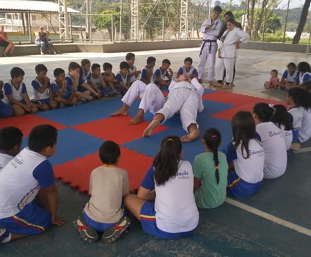 “Quando a gente luta a gente sente alegria, quando a gente briga não sentimos isso”, comentou um dos alunos, mostrando que havia entendido um dos princípios básicos das artes marciais.