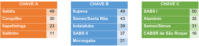 Com a vitória avassaladora, Itupeva também se iguala aos líderes dos outros grupos, já que Sabitu tem os mesmos 49 pontos no Grupo A e SABS I tem 50, no Grupo C.