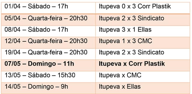 Confira as datas e horários dos jogos da equipe itupevense: