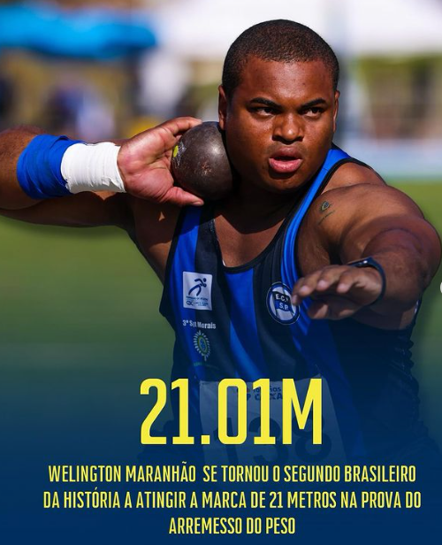 Quem também teve muito o que comemorar foi Wellington Silva Morais, conhecido pelo apelido de Maranhão, que venceu a prova do arremesso de peso, com a marca de 21.01 metros, ficando bem próximo do índice olímpico que é de 21.50m. O ouro foi conquistado no Challenge da World Athletics, na cidade de Concepción del Uruguai (Argentina). A performance de Maranhão foi a segunda melhor do país na história, atrás apenas da marca obtida pelo catarinense Darlan Romani, já classificado para Paris. Romani é recordista sul-americano no arremesso de peso 22,61 m.