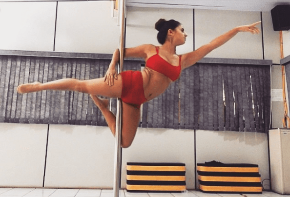 “Sempre fui amante de atividade física, aos 3 anos comecei natação, fiz vários anos e participei de competições. Depois disso, fiz alguns anos de Jazz e 4 anos de hipismo; participei de campeonatos internos, mas, infelizmente, por questão financeira, tive de desistir desse sonho. Aos 15, comecei com a musculação, fazia treinos leves e corria na esteira, mas em dois anos comecei a ter complicações na perna, a famosa ‘canelite’. Fiz muito tempo de fisioterapia e fui orientada a procurar uma atividade de menor impacto. Foi aí que vi um anúncio, na própria academia: Aulas de Pole Dance. Nunca tinha ouvido falar, ainda mais aqui no interior. Marquei uma aula para conhecer e pronto, foi amor à primeira vista! Em um mês eu já tinha instalado uma barra em minha casa. Fazia aulas particulares uma vez na semana e o restante dos dias treinava em casa, o máximo que podia, às vezes de madrugada. Perdi 8 quilos em três meses. Eu realmente ansiava por evolução. Em um ano terminei os três módulos, que na época eram considerados níveis ‘básico, intermediário e avançado’”, explica a atleta itupevense que, por conta do amor ao esporte, largou a faculdade de Publicidade e Propaganda, em São Paulo, para cursar Educação Física na ESEF (Escola Superior de Educação Física) em Jundiaí e, atualmente formada, atua como professora em Jundiaí, além de dar aulas de Pole Dance em Itupeva e Cabreúva.