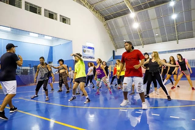 Cardiodance – Antes do ponta pé inicial, o professor André Ramalho da Casa da Cultura, realizou a abertura do evento com os alunos da oficina de Cardiodance.