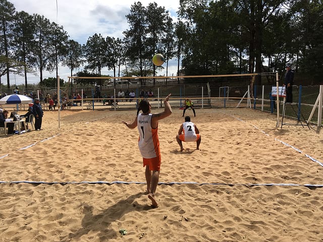 No vôlei de praia masculino, duplas de 25 cidades disputam a medalha.